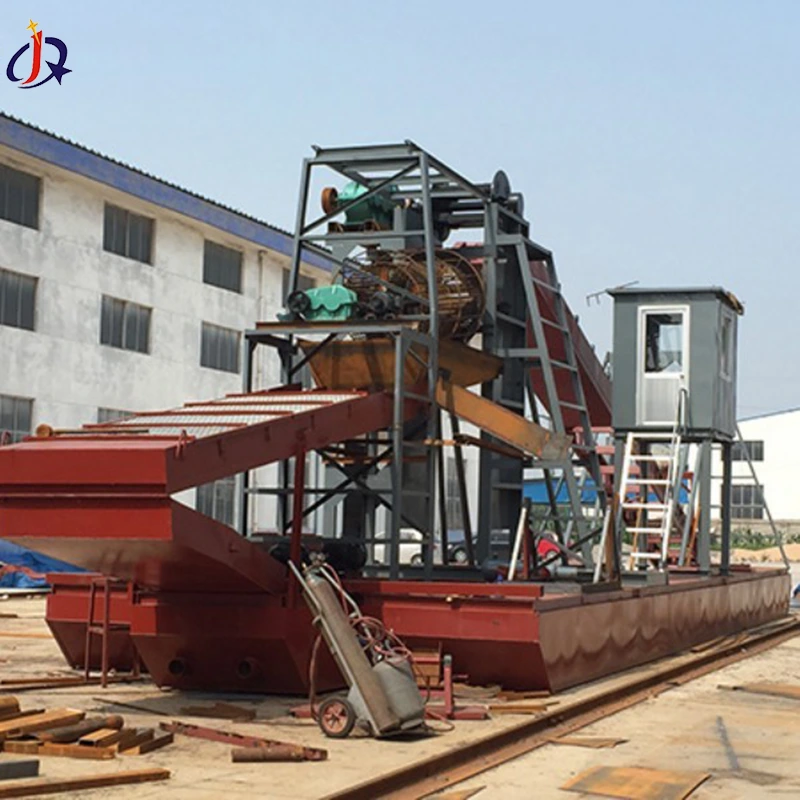 Die kettingemmer-goudbaggerbote vervaardig deur Qingzhou Jinqi Mining Machinery Co., Ltd., 'n professionele vervaardiger, dien as die kerntoerusting vir grootskaalse alluviale goudmynbou in akwatiese omgewings. Met 'n hidroulies-aangedrewe kettingemmerstelsel, is hierdie baggerbote goed geskik vir harde ertslae (soos klippe en harde grond) en werk effektief in vlak tot matig diep watersones (1,5 tot 20 meter). Hulle spog met sterk uitgrawingsvermoëns, hoë skeidingsdoeltreffendheid en lae bedryfskoste. Tans bied Jinqi fabriek-direkte verkope van sy kettingemmer-goudbaggers aan.